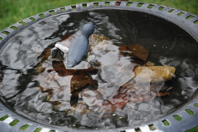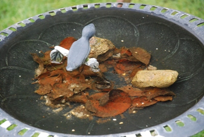 Refleksioner i vandoverfladen kan også fjernes. - Her et fuglebad